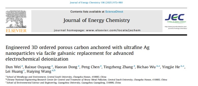 淡水资源短缺与电化学脱盐技术挑战随着全球淡水资源危机加剧,高效低能耗的海水淡化技术成为研究热点。电容去离子(CDI)技术因其低能耗、易再生等优势备受关注,但其核心电极材料的发展长期受限于氯离子存储效率低和循环稳定性差的问题。传统银(Ag)电极虽具备高理论容量(329 mg g⁻¹),但在电化学循环中