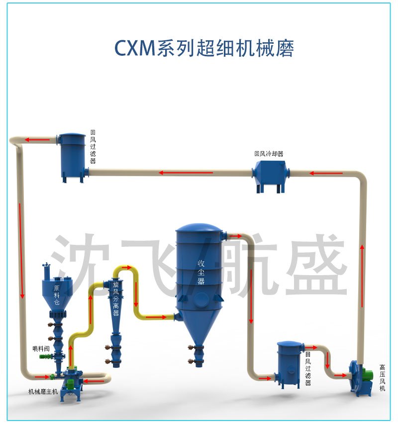 CXM系列超细机械磨—适合于超细粉体产品解聚;对Dmax指标有严格要求。