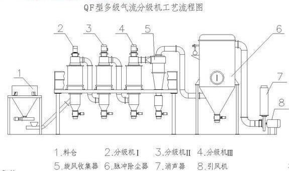 干性粉体分级一般选用气流分级设备,因气流分级设备能耗低,纯净度高无污染。