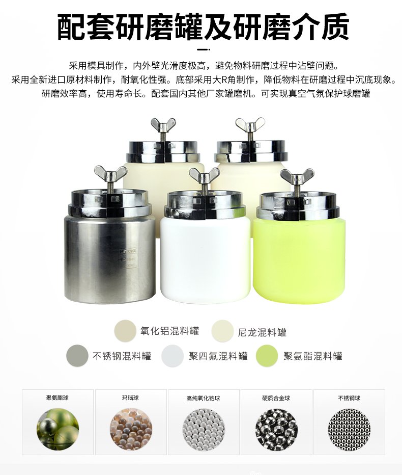 罐磨机工作原理是跟着两根滚轴来运动,所产生的研磨球的规则运动,内部的运动均匀,不会出现粘壁,沉淀等现象。**的优势不是超细研磨,而是干粉混合,浆料混合,纳米混合,在所有的机型中,滚筒球磨机的混合效果远远高于其他球磨设备,在实验数据分析报表里它呈现的粉体曲线较窄,峰值较高,那么材料在下一个工艺中可发挥出更高的稳定性。