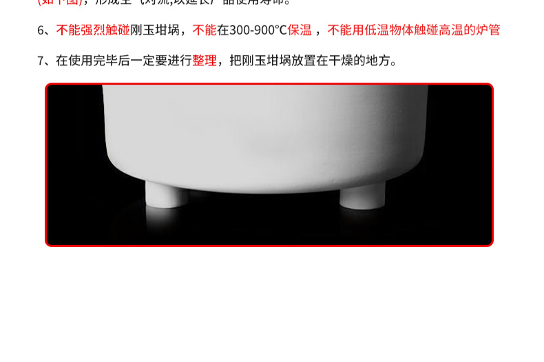 坩埚一般为瓷制品,规格有10、15、25、50mL等。种类有瓷坩埚、铁坩埚、氧化铝坩埚等。坩埚能耐高温,用来灼烧沉淀、熔化不与坩埚反应的盐类及使结晶水合物脱水等。坩埚用石灰、炭素及其他各种耐火土等为材料制成。坩埚可直接用火焰加热(用泥三角支撑),但需预热;实验中,坩埚必须用坩埚钳夹取,严禁用手接触热的坩埚,以免烫伤;为防止溅出固体或落入杂质,加热时应盖上盖,但当物质受热有大量气体或液体生成时,不可加盖。