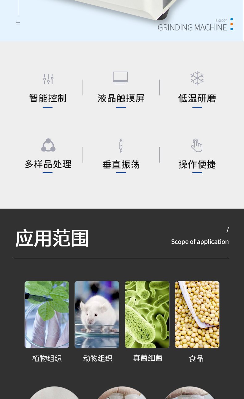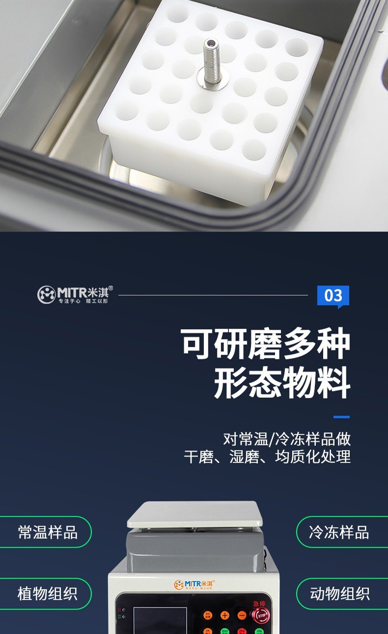 组织研磨仪是一种特殊的、快速的、高效率的、多试管的一致系统。它能将任何来源(包括土壤、植物和动物的组织/器官、细菌、酵母、真菌、孢子、古生物标本等)的原始DNA、RNA和蛋白质进行提取和纯化。本款仪器又名多样品组织研磨机,快速组织研磨机,多样品组织匀浆机,快速样品匀浆系统。