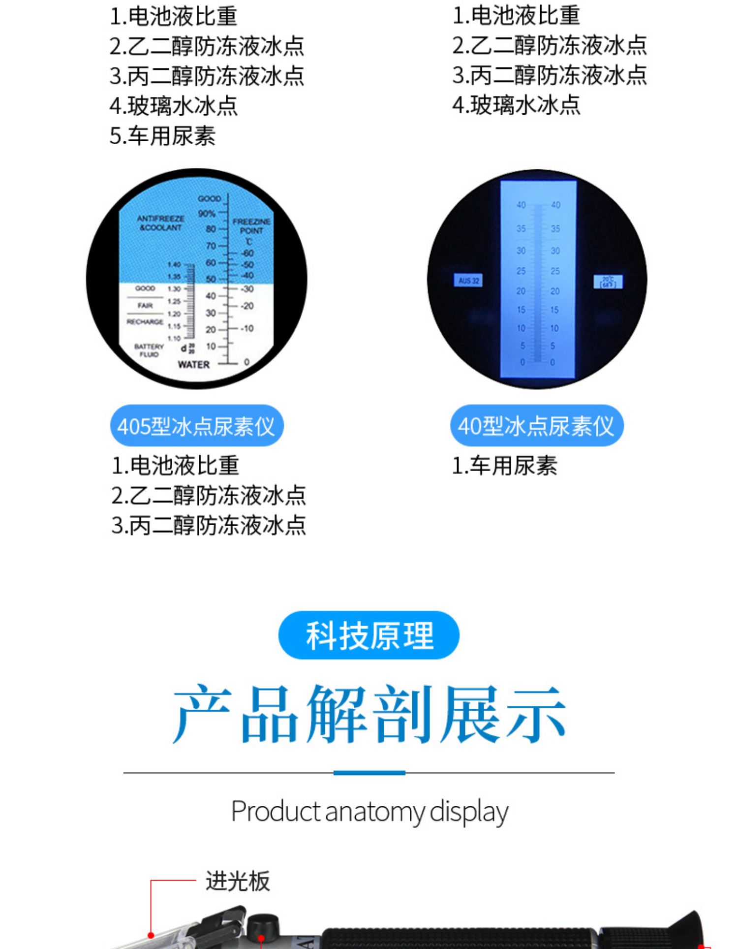 折光仪,又称 折射仪,是利用光线测试液体浓度的仪器,用来测定折射率、 双折率、光性,折射率是物质的重要物理常数之一。许多纯物质都具有一定的折射率,物质如果其中含有杂质则折射率将发生变化,出现偏差,杂质越多,偏差越大。