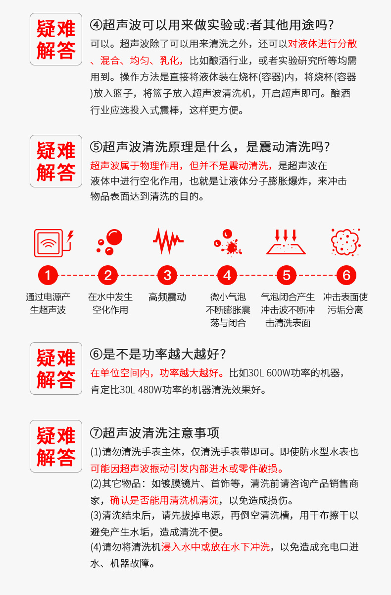 超声波清洗机(Ultrasonic Cleaner)是利用超声波发生器发出的高频振荡信号,使液体发生“空化效应”而产生强大的冲击波,从而剥离污垢层。