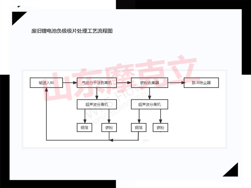 废旧锂离子电池中含有一些有价金属元素,如钴、镍等,和一些有毒化学物质,如:氟化物。因此,在废旧锂离子动力电池中,尤其是正极材料的回收及再利用对节约自然资源和保护环境显得非常重要。为提取锂电池中的锂和钴等比较高价值的有色重金属,山东摩克立自主研发了一套物理法处理废旧锂离子电池的设备。其设备具有生产效率高、回收效率高,并且不会造成任何的环境污染,响应了绿色低碳、节能环保的政策要求,也兼顾了经济与环保效益。