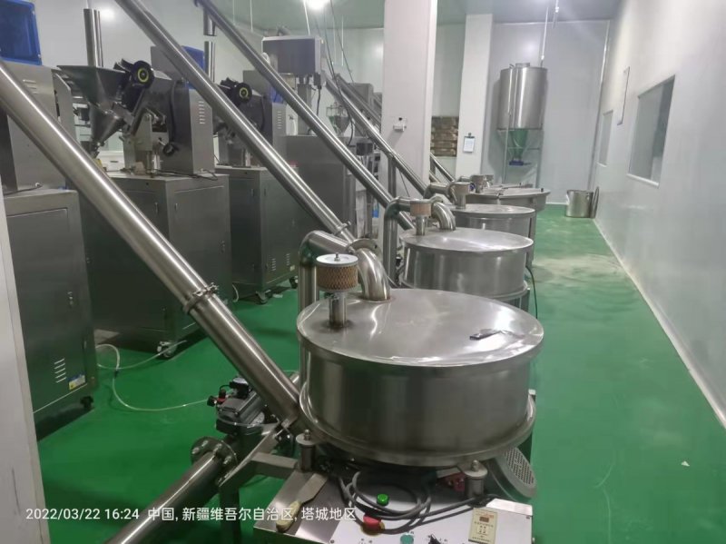 以采用振动进料方式,易拆卸,无死角,确保表面光滑、不脱落、不渗透,易清洁、不污染产品。进料速度可控。
