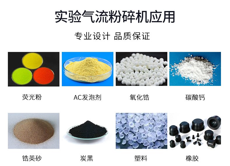 分级气流粉碎机具有超微粉碎各种物料的广泛适应性。对高硬  度、脆性物料、凝结性和纤维状的物料均具有良好的粉碎  性。如: 锆英砂、氧化锆、二氧化硅、金红石钛白粉、氧  化铝、滑石、碳酸钡、硫酸钡、碳酸钙、硅酸铝、高岭土、 炭黑、白炭黑、AC 发泡剂、复印墨粉、涂料、磷酸氢钙、  膨润土、荧光粉、石墨、塑料和橡胶用各种填充剂、农药、 珍珠粉、花粉等,随着高新技术的发展,应用范围必将更  加广泛。