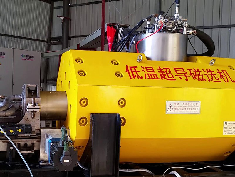 ◆背景磁场强度高,低温超导磁选机采用Nb-Ti超导材料制作的线圈,磁场强度达到5.5T。而常导磁体场强一般小于2T,低温超导磁选机是其2~5倍。