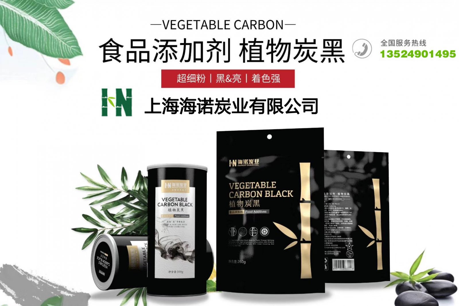 海诺系列植物炭黑,是以大别山青竹为原料,经高温炭化,纳米级超细研磨精制而成。产品经国家产品质量监督检验院检测,10项理化指标全部优于国标GB28308,已批量出口欧盟。产品色泽好,又黑又亮;细腻,不影响食品口感;无任何化学成份添加。广泛应用于冷冻饮品(食用冰除外)、糖果、粉圆、糕点、饼干、胶原蛋白肠衣等。