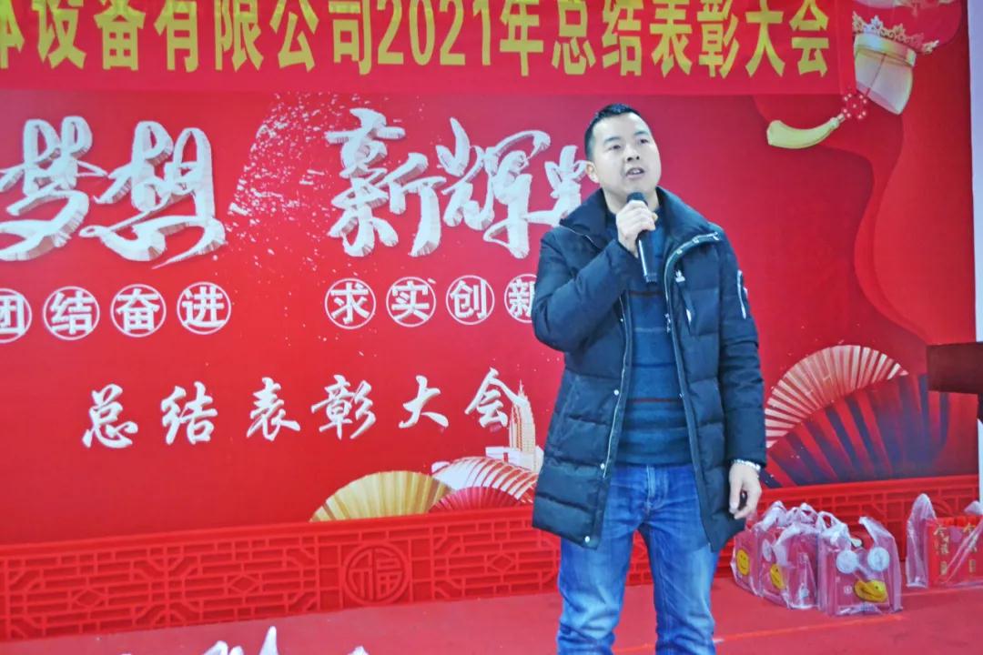 最后,副董事长廖水泉在会上对公司 2021年所取得的成绩、获得的荣誉、存在的问题及2022年需要改进的地方进行了总结汇报。他感谢过去一年在公司取得阶段性成果中,全体干部员工付出的心血和汗水,特别是展现了高度的思想觉悟和宝贵的奉献精神,他希望大家在公司步入新阶段、确立新定位后,共同努力再创佳绩。