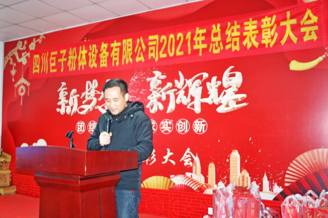 1月27日,正逢腊月二十五,四川巨子粉体设备有限公司全体员工欢聚一堂,互致祝福,共同迎来一年一度的总结表彰大会。会议在公司行政总监常总的主持下拉开了帷幕,公司总经理白海、副董事长廖水泉、副总经理刘波等领导分别做出了致词。
